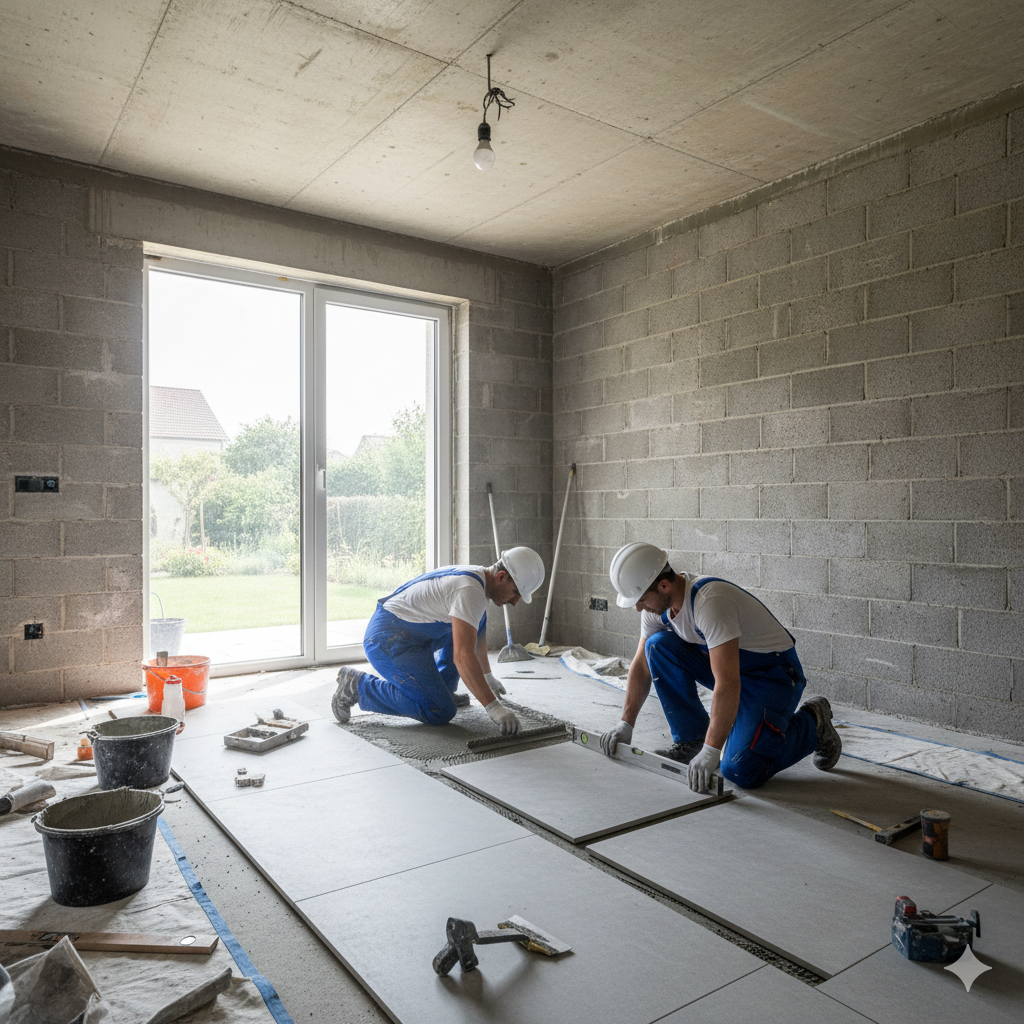 A standard bathroom or kitchen floor usually takes 3 to 5 working days, while larger-scale projects like whole-house flooring or complex stone masonry can take 2 weeks or more depending on the preparation needed.